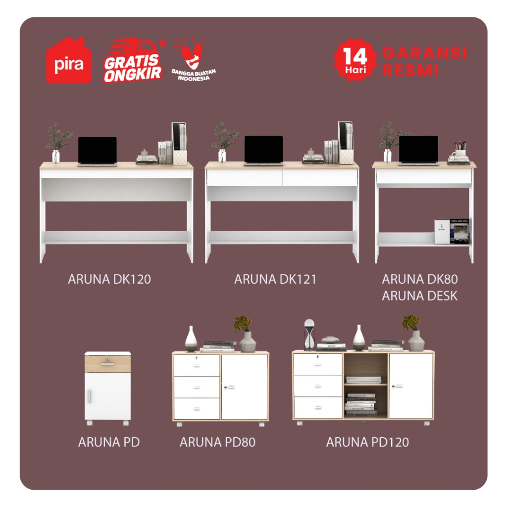 Pira Metropolis OX Aruna DK121 Meja Kerja Meja Belajar dengan Laci