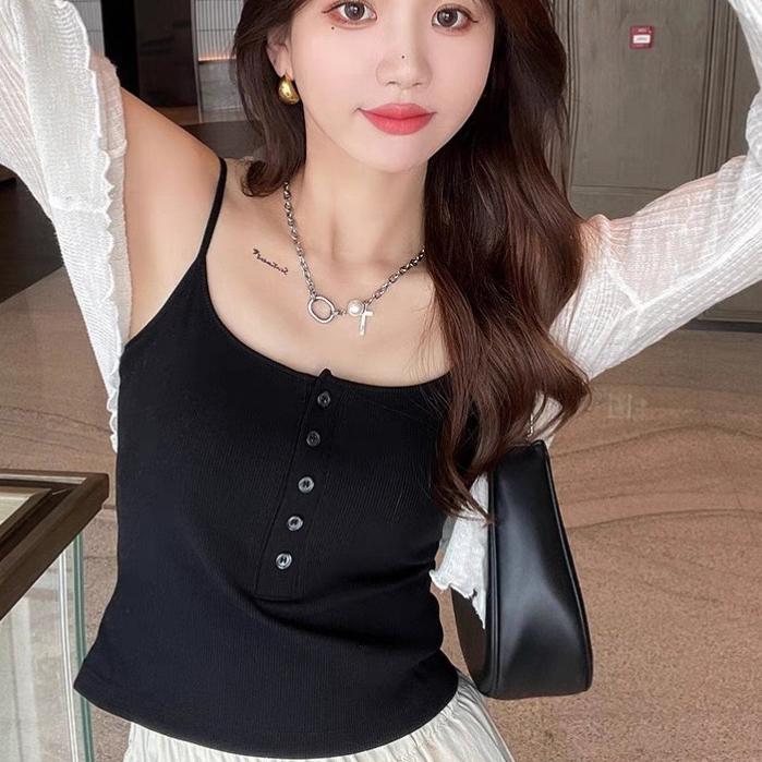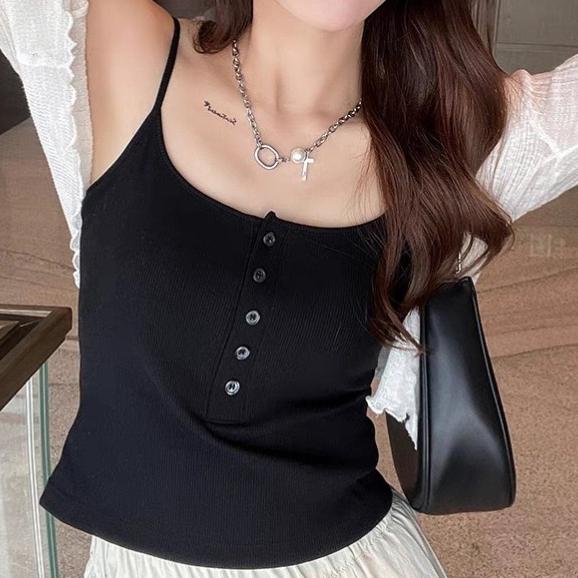 Tank Top Bra Wanita Busa Dalaman Kancing Korean Style - HITAM