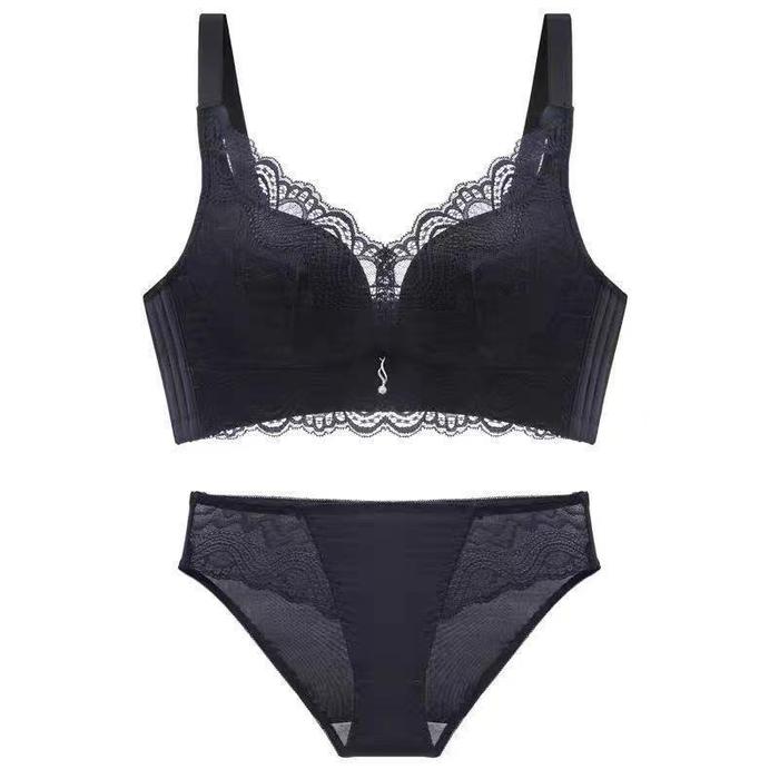 (Set Bra+ Celana ) dalam women bra BH WANITA PUSH UP busa tipis nyaman BRA WANITA TANPA KAWAT - Hitam(set) 34/75AB