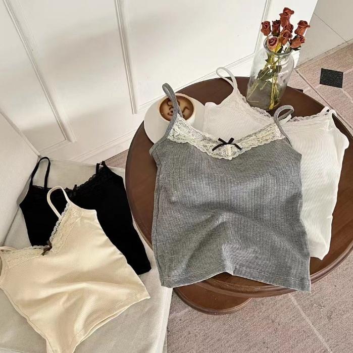 Tank Top Wanita Busa Bra Dalaman Renda Pita Korean Style - HITAM