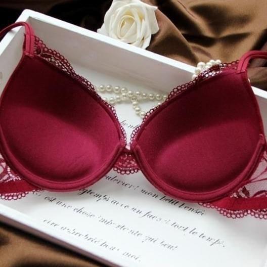 Bra Set BH + Celana Dalam Wanita Push Up Bra Kawat Sexy Elegant Renda Lingerie Busa Premium Quality - wi-ne Red 32