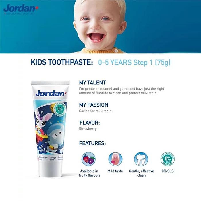 Jordan Kids Toothpaste milk teeth 0-5thn 75gr - Pasta Gigi Anak - Strawbery
