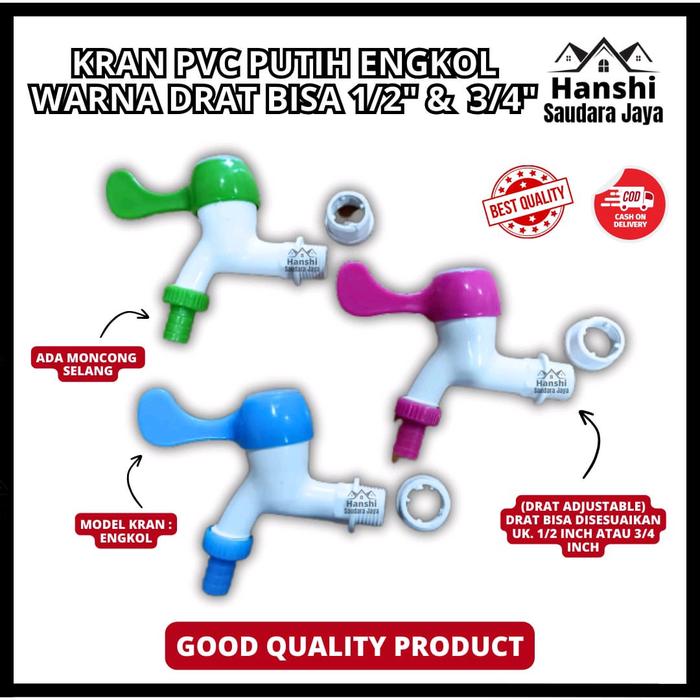 REKOMENDASI KRAN TEMBOK TAMAN MODEL ENGKOL JEMPOL DRAT BISA 1/2 INCH 3/4 INCH HIJAU PINK PVC AIR - PINK ORI