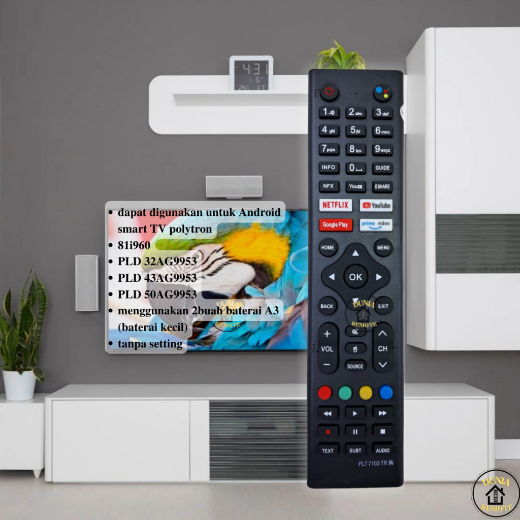 Remot Remote TV POLYTRON Android Smart TV Polytron LED LCD poly103tv tanpa setting prime video