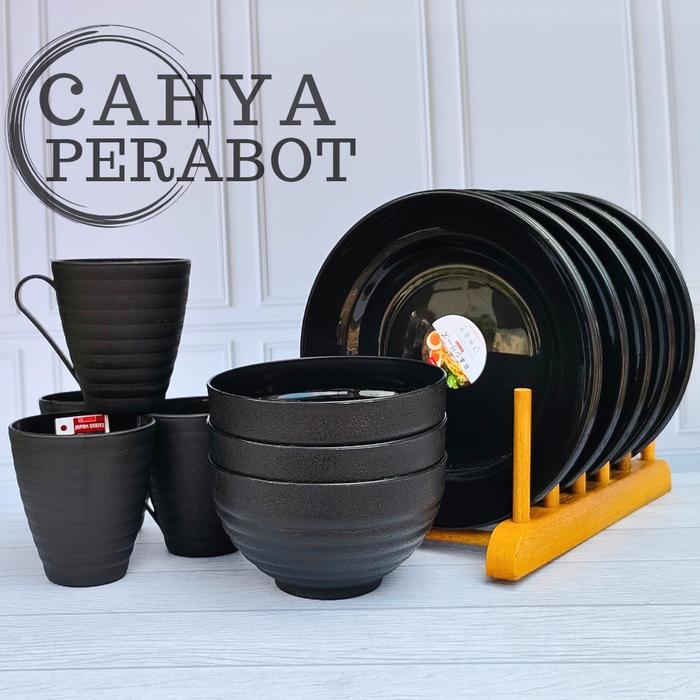 [Mall] PROMO PAKET HEMAT RAMEN SET LENGKAP 12 PCS CAMPUR PIRING MANGKUK DAN GELAS RAMEN HITAM TEBAL BPA FREE TAHAN PANAS