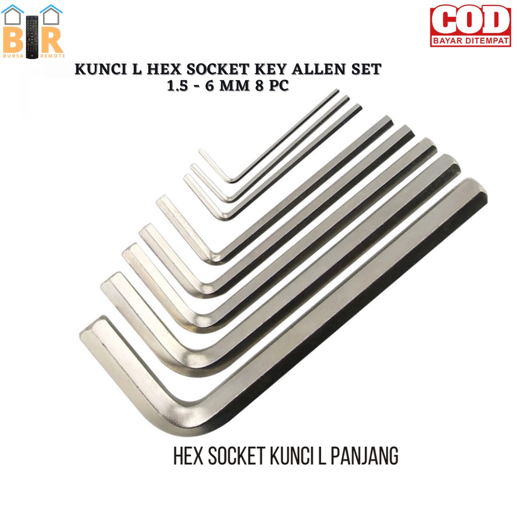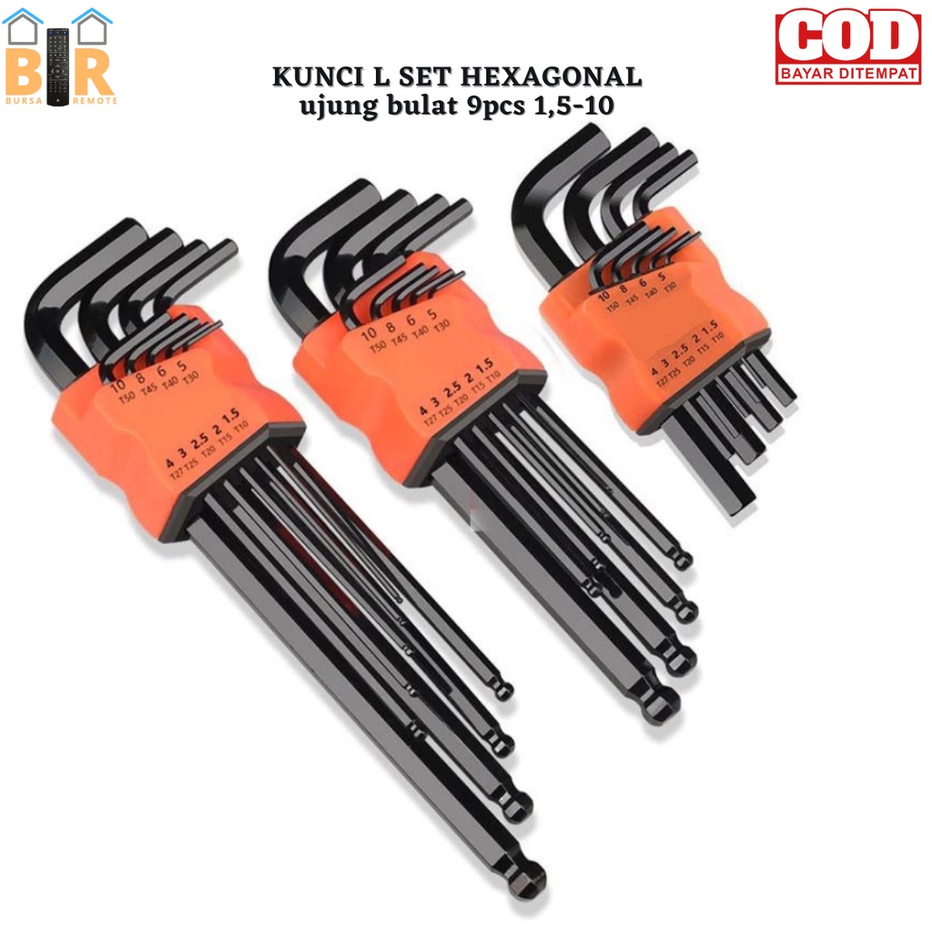 Kunci L Hexagonal Bintang Bulat Panjang Pendek Kombinasi Key Allen 8 Pcs