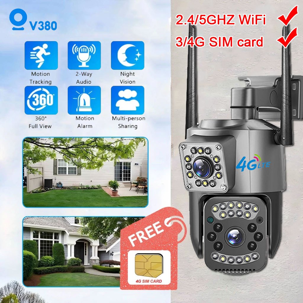 kamera cctv v380pro WiFi/4G SIM card Menghubung 8MP HD PTZ Dual Lens Dual Screen Pelacakan olahraga Outdoor Waterproof CCTV