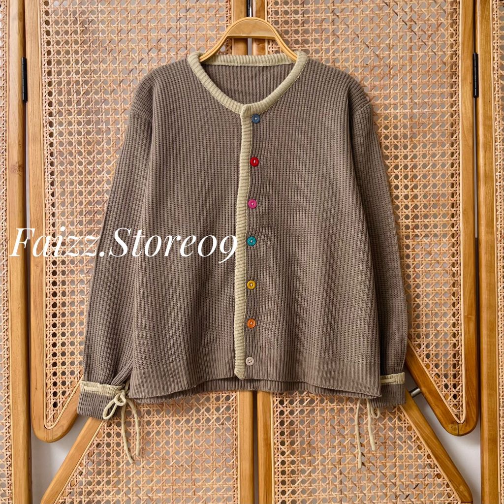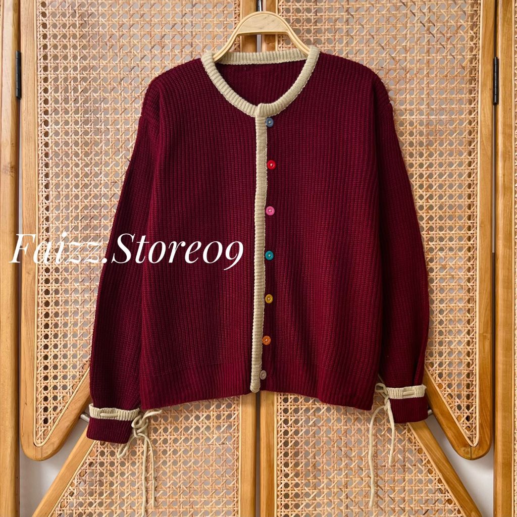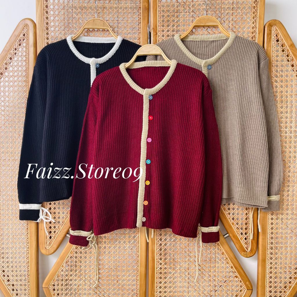 LIMY CARDY - ATASAN CARDIGAN RAJUT WANITA KANCING PELANGI KEKINIAN LENGAN MOTIF PITA KOREAN STYLE PREMIUM