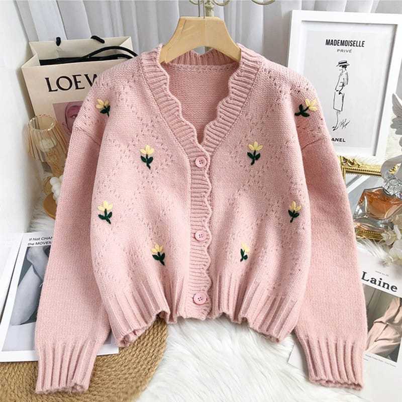 TARA - CARDIGAN CROP FLOWER /PREMIUM WANITA/ LENGAN PANJANG/ ATASAN RAJUT SWEATER KNITWEAR OUTER/ KOREAN KNIT TOPS