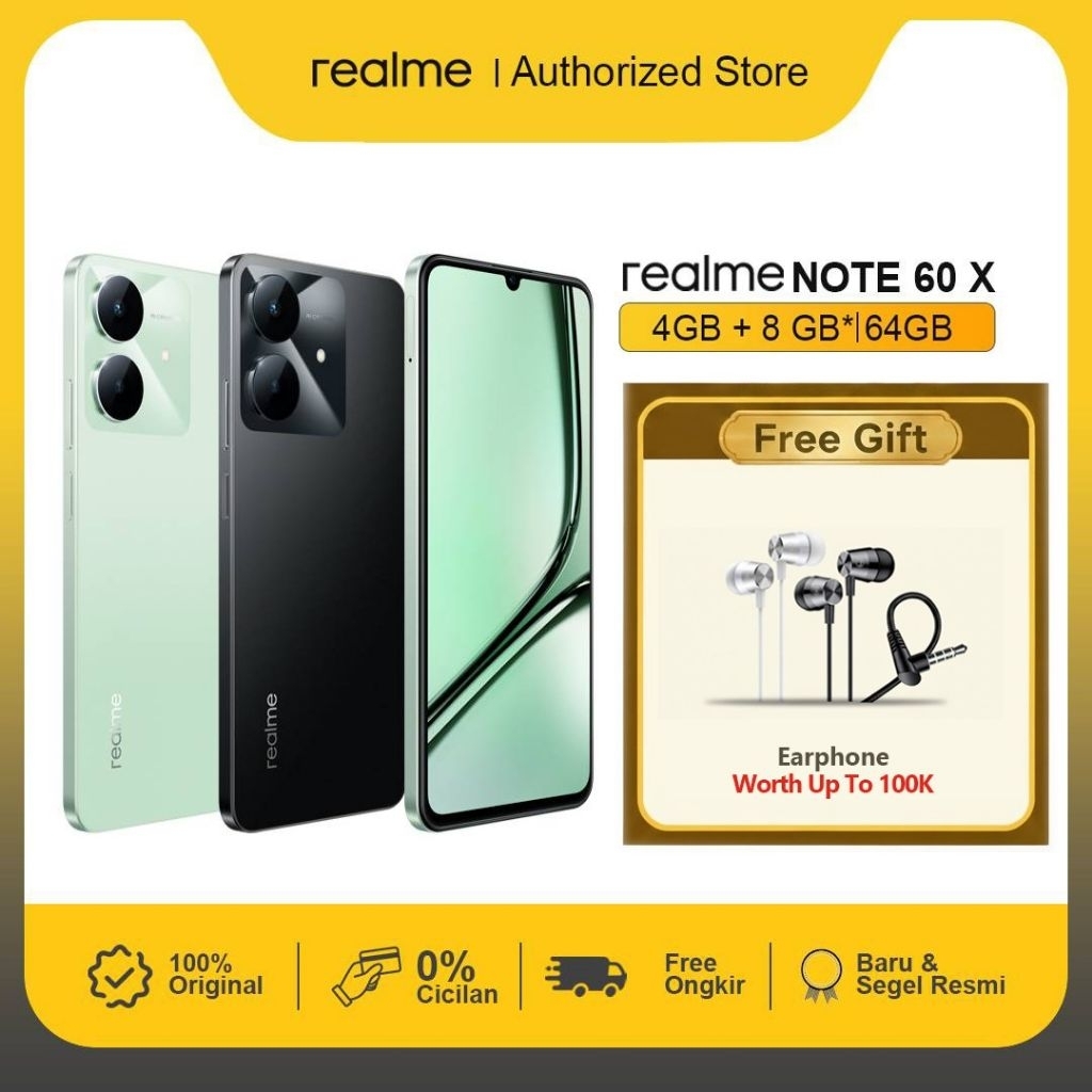 realme Note 60x 4GB+8GB|64GB Rangka Metal Tahan Banting | Baterai Besar 5000mAh | Garansi Resmi