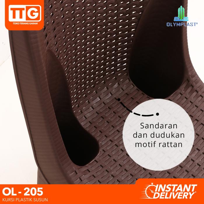 [Mall] OLYMPLAST KURSI CHAIR PLASTIK SANDARAN TUMPUK MOTIF RATTAN MINIMALIS ESTETIK OL 205 - COKELAT TUA