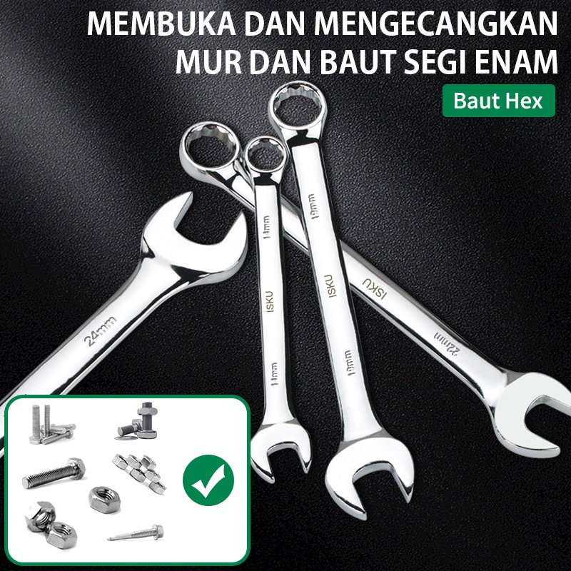 Kunci Ring Pas Set Isku 8mm24mm Bahan Kuat Anti Karat Alat Perkakas