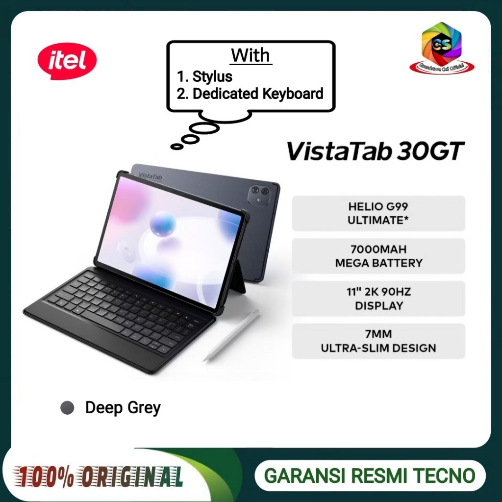 ITEL Vista Tab 30 GT RAM 6/128GB - 11" inc IPS Full HD, [FREE Keyboard + Stylus] GARANSI RESMI ITEL INDONESIA - VistaTab