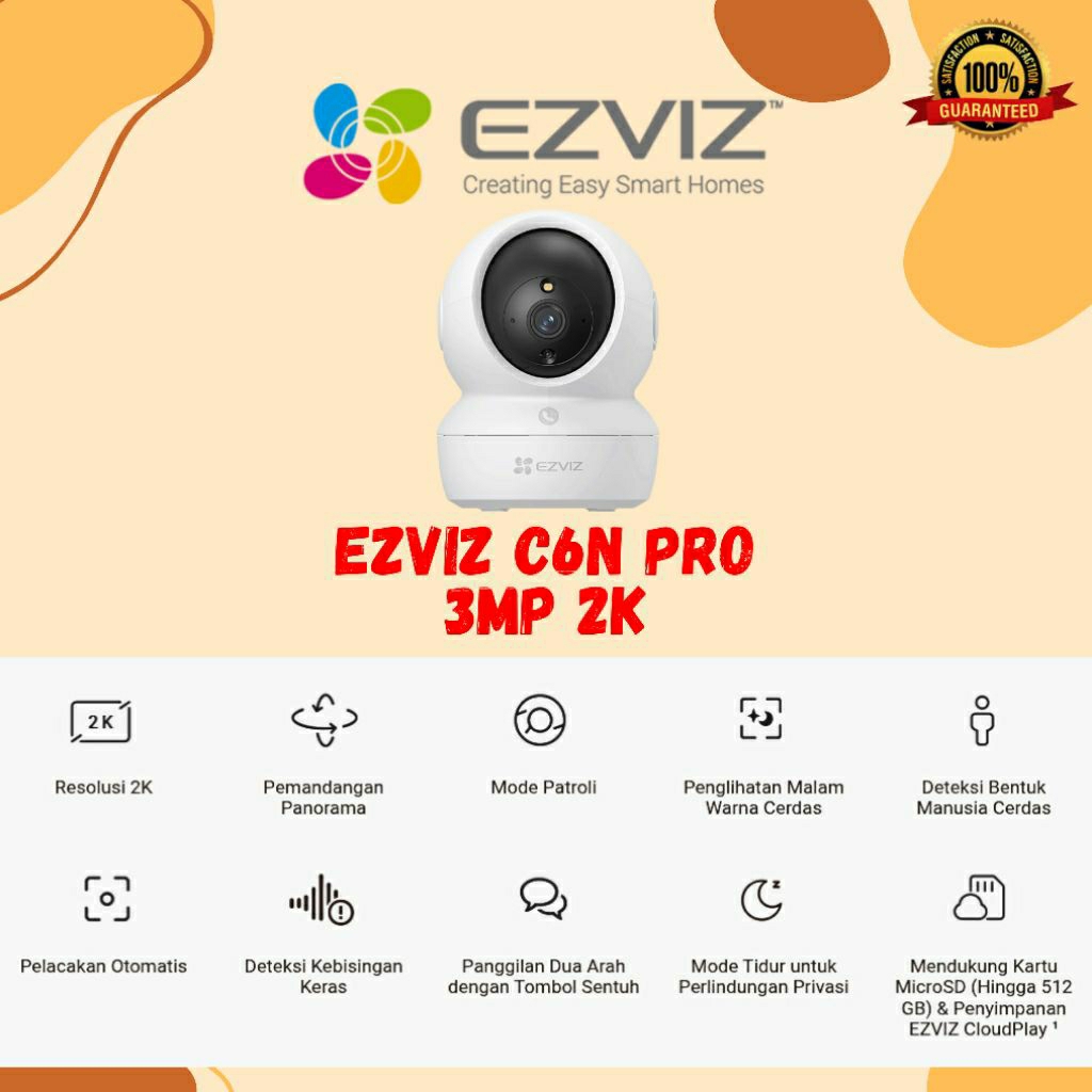 [PROMO] CCTV EZVIZ C6N PRO 3MP CCTV Smart Wifi Camera 3MP 2K + Bonus Memori 32GB/64GB/128GB/256GB + Bonus Braket