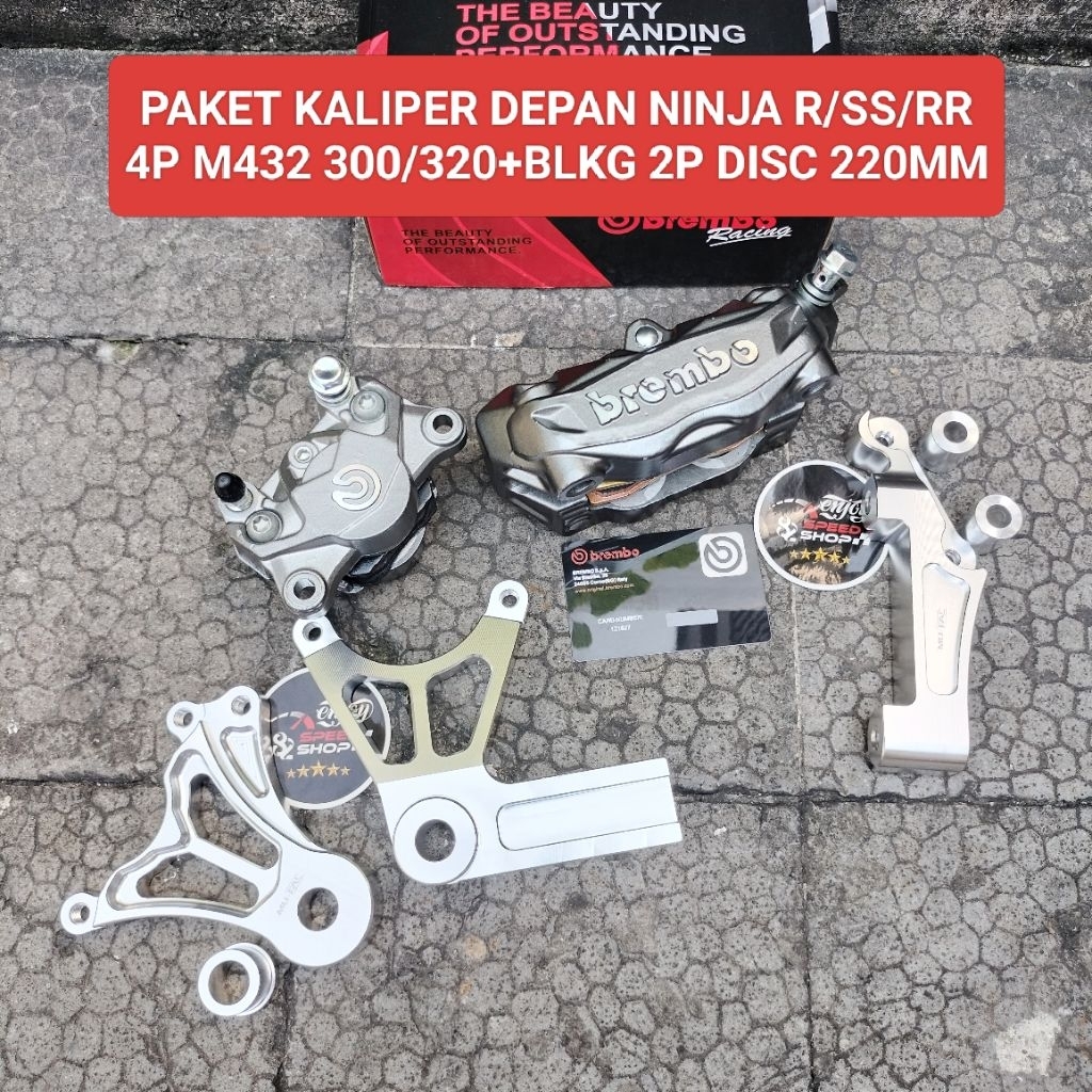 Paket Set Kaliper Depan 4P M432 + Breket kaliper Belakang 2P atas Big logo Ninja R SS RR 300/320