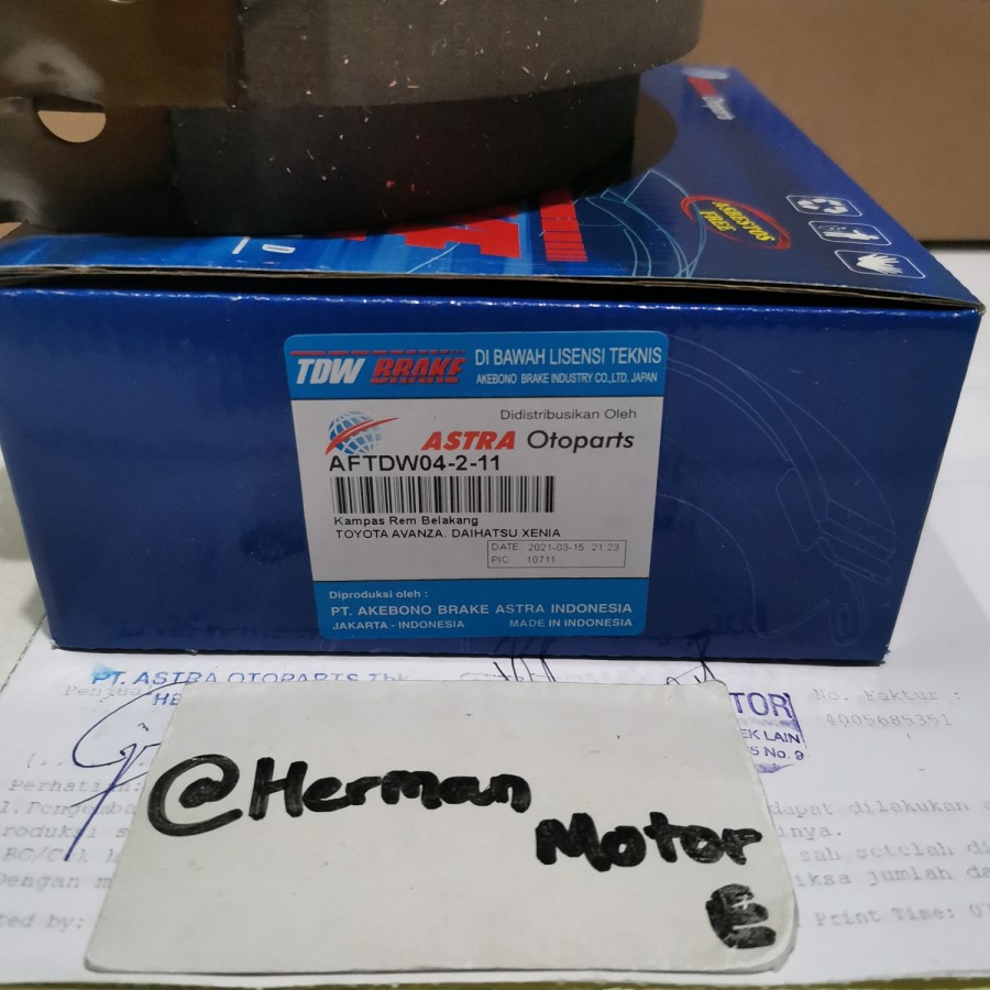 Kampas Rem Belakang Tdw Original Avanza Xenia 2004-2021 Brake Shoe Aftdw04-2-11 (Dibawah License Akebono Brake Indonesia