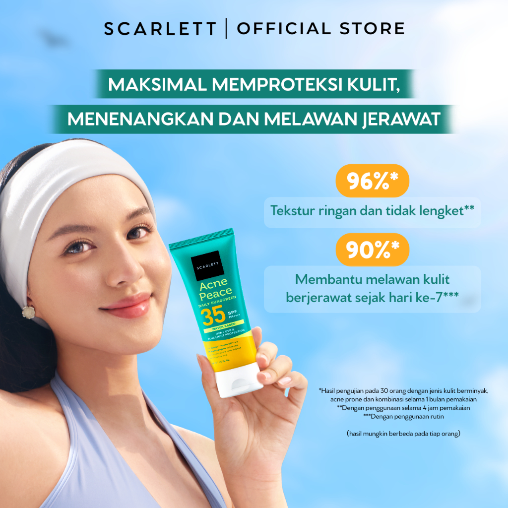 SCARLETT Acne Peace Daily Sunscreen SPF 35 PA++++ – Sunscreen Kulit Berjerawat , Teruji In , Non Acnegenic Tested , Non