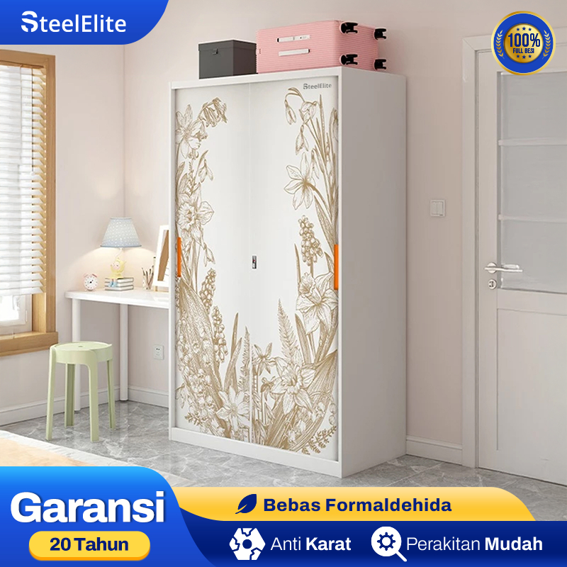 STEEL ELITE LEMARI BESI SLIDING 2 PINTU LEMARI BESI PAKAIAN LEMARI BAJU MINIMALIS FULL MOTIF