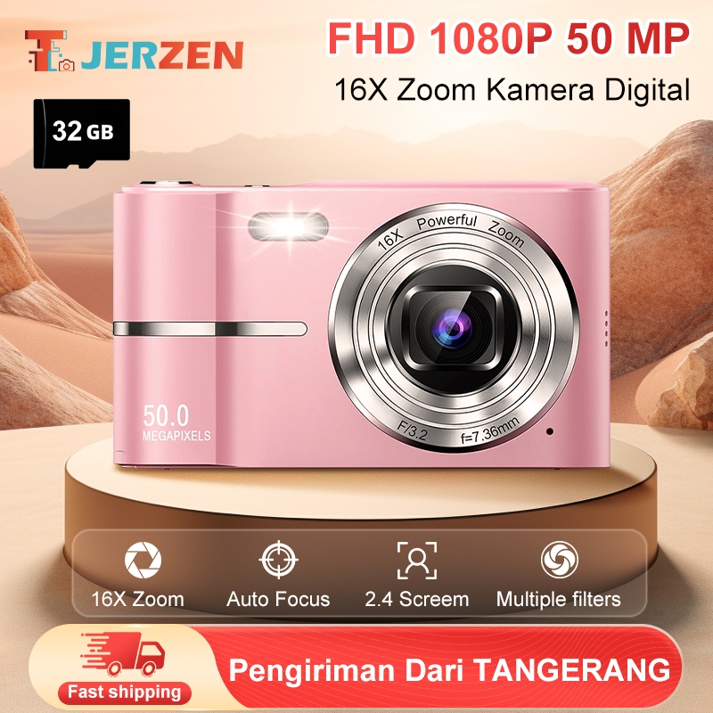 T-JERZEN Kamera Digital 1080P zooom 16X 32GB Cocok untuk Anak Laki-Laki &Perempuan Remaja Pemula M03