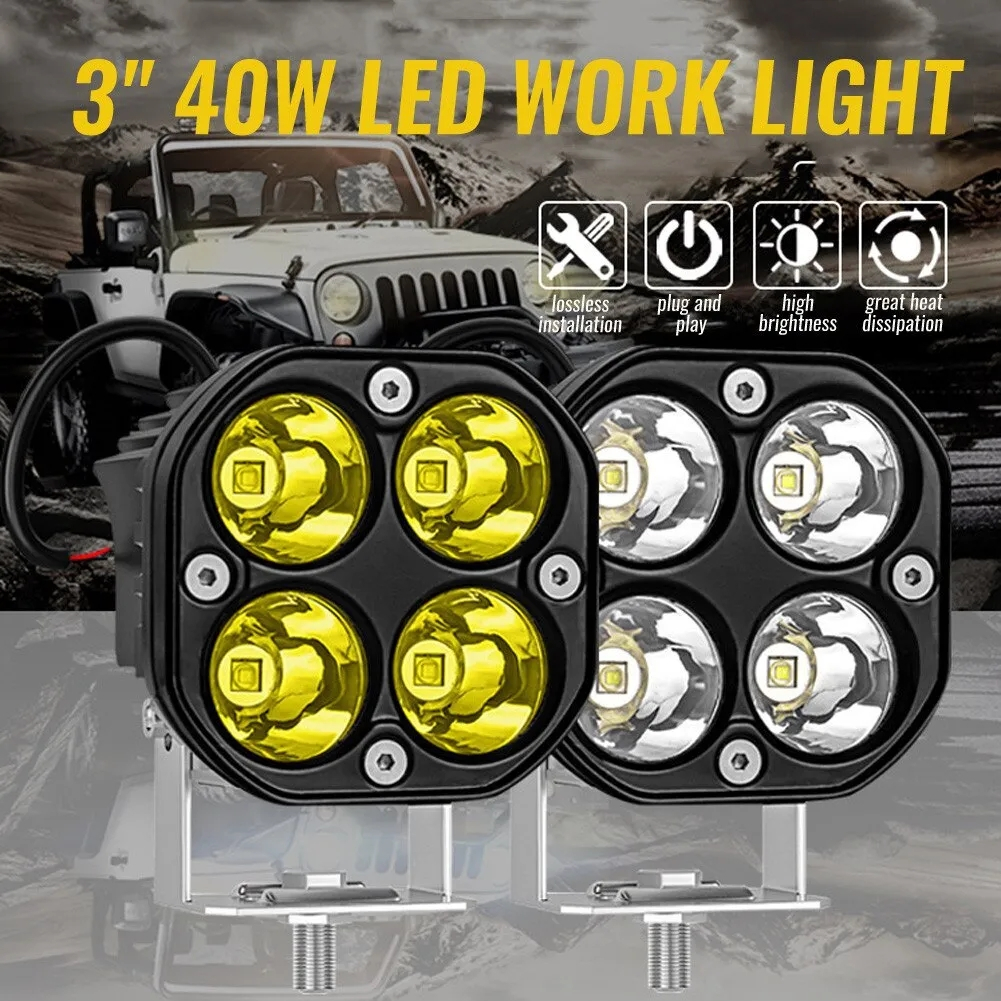 Lampu Kerja Led Mobil Tahan Air Lampu Berkendara 3 Inci 40W Lampu Persegi Kecil Menebal Lampu Sorot Off-Road