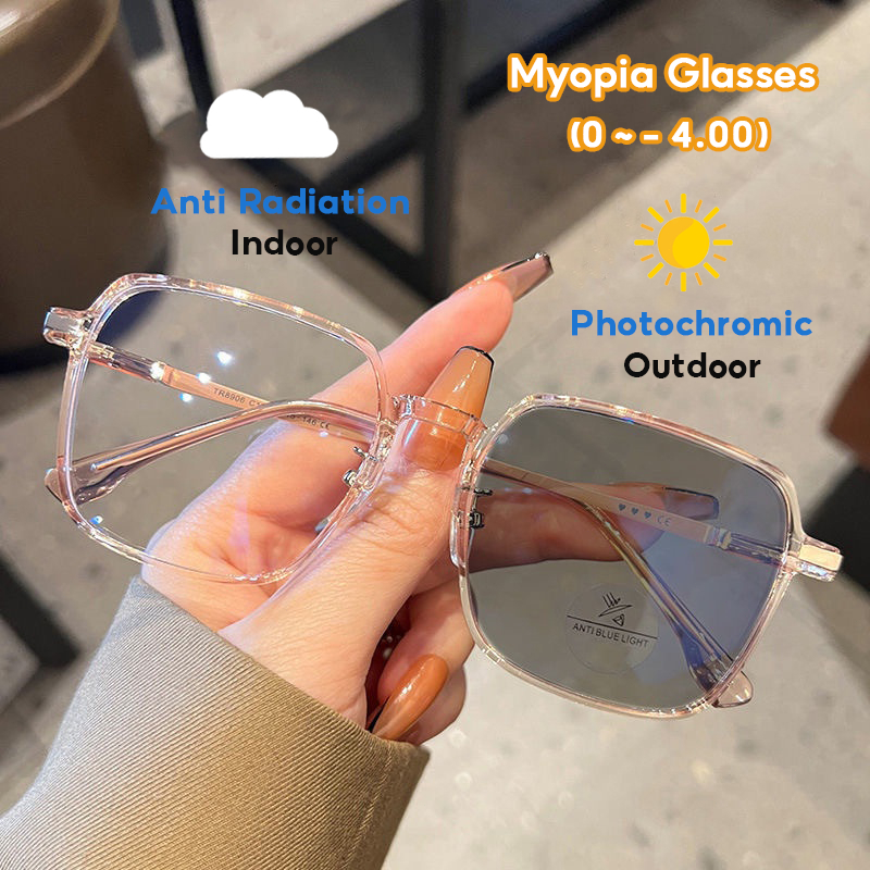 Photochromic Anti radiasi 0~ -4.00°kacamata jarak dekat kacamata minus komputer pria wanita