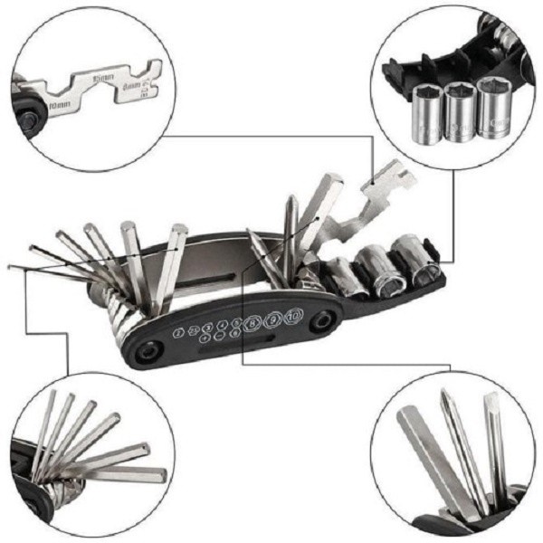 Kunci Set Lipat Bahan Carbon Steel 16 In 1 Shok Obeng Multifungsi Sepeda