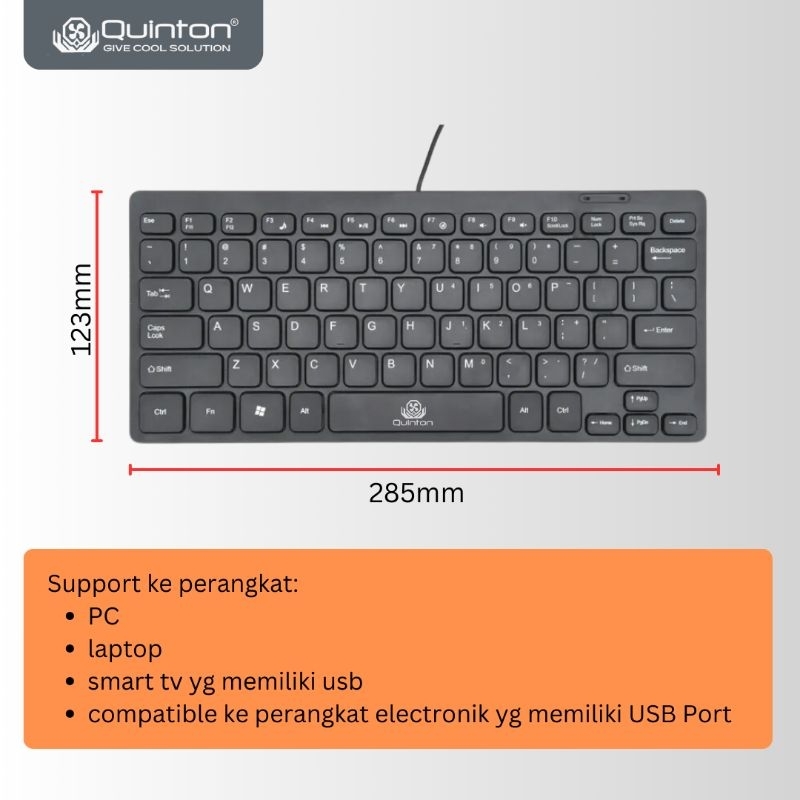 Keyboard Quinton K1000 Mini Usb Wired 78 Key Hitam Putih