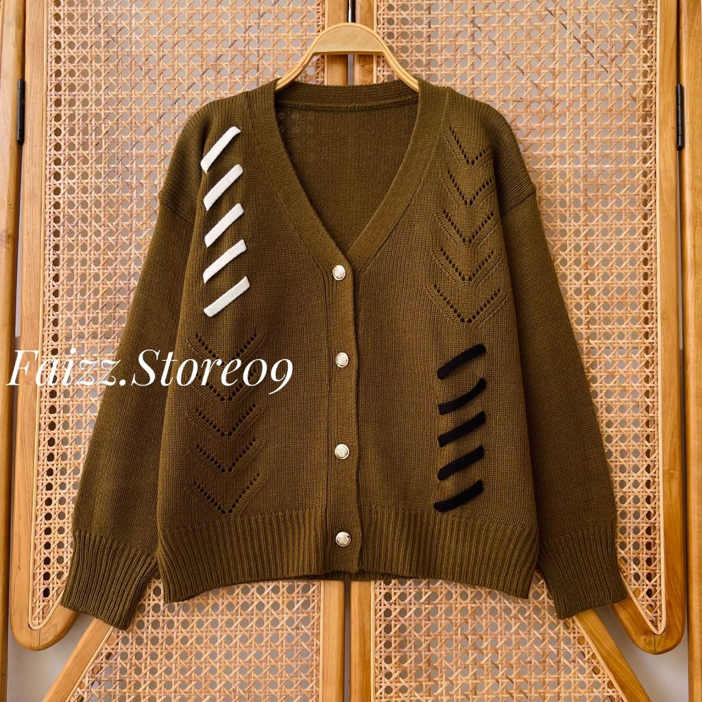 SUTURE CARDY KNITWEAR - OUTER ATASAN CARDIGAN RAJUT KANCING WANITA MOTIF TALI KOREAN STYLE PREMIUM