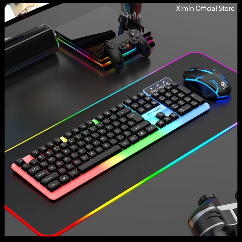 Keyboard Mouse Set Xim Pc Gaming Rgb Termasuk Mouse & Keyboard Mekanikal Usb Untuk Pclaptop