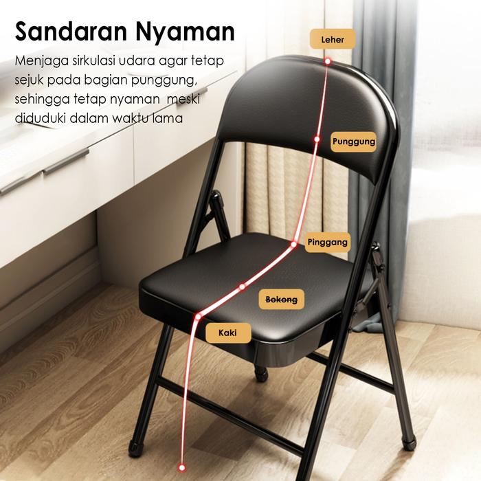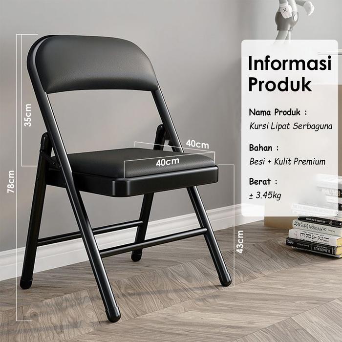 [Mall] KURSI LIPAT KANTOR PORTABLE SERBAGUNA KURSI KULIAH KERJA BELAJAR MAKAN KULIT PREMIUM FURNITURE - Y7A1-HITAM