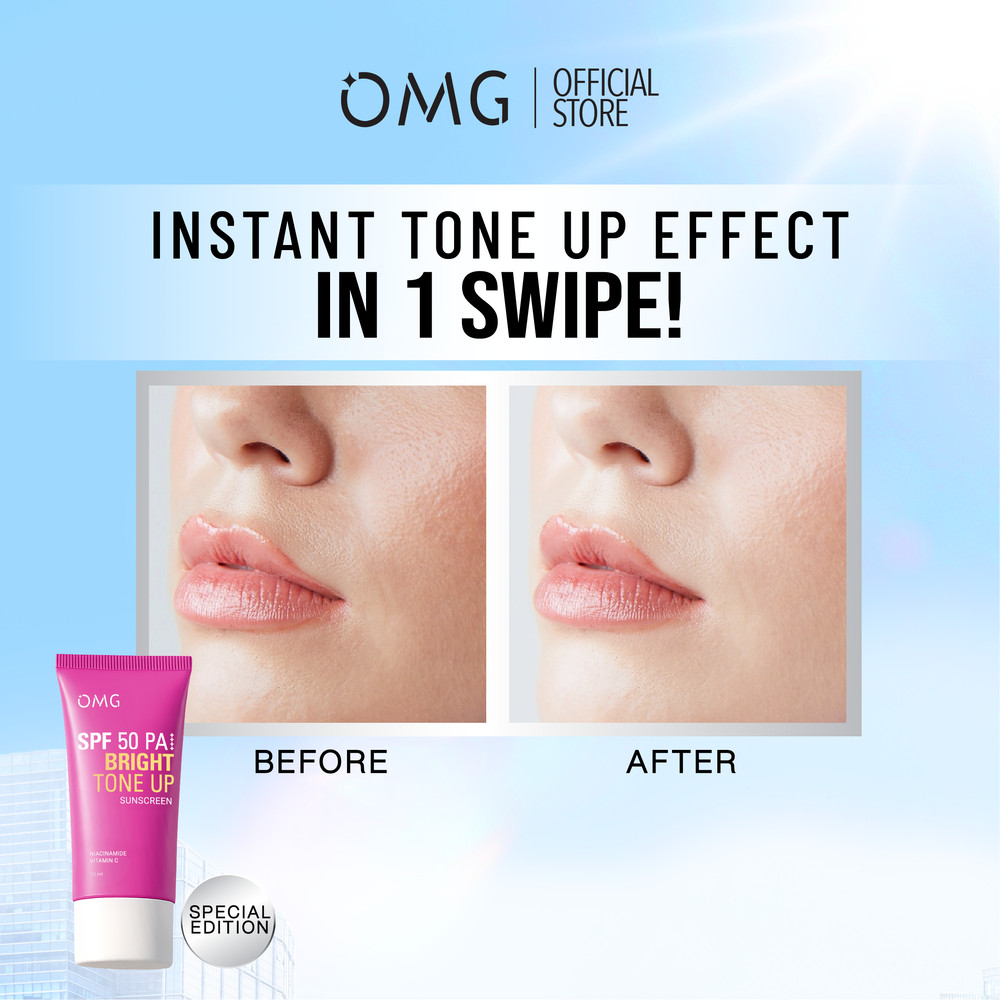[BELI BANYAK, LEBIH MURAH!] OMG Oh My Glow Bright Tone Up UV Barrier Sunscreen SPF 50 PA++ 25 ml - Mencerahkan, Melindun