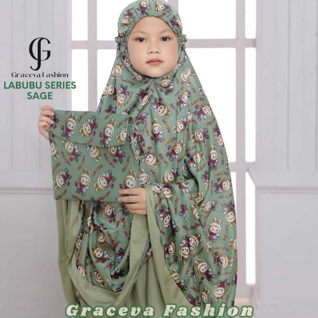 Mukena Anak Mukena Anak Motif Labubu Usia 8-15 Tahun | Mukena Anak Tas Amplop | Mukena Anak Tanggung Terbaru Kekinian