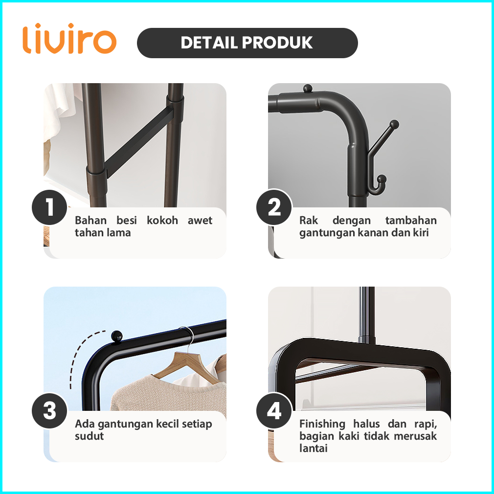 Liviro Stand Hanger Gantungan Baju Berdiri Bahan Besi Tempat Gawang Jemur Serbaguna Premium Quality