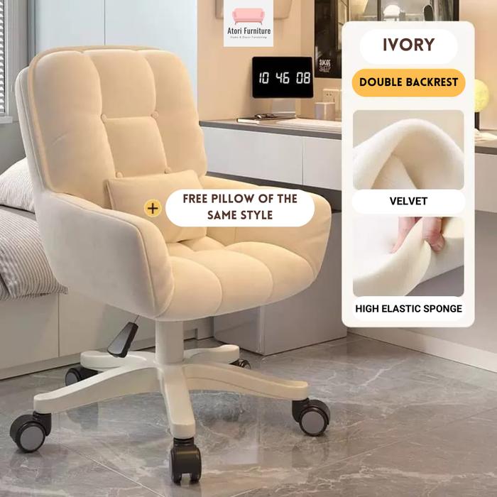 [Mall] ATORI CHERRY CHAIR RODA HIDROLIK KURSI SANDARAN BANTAL KURSI SANTAI KURSI MEJA RIAS KURSI MULTIFUNGSI - GREEN