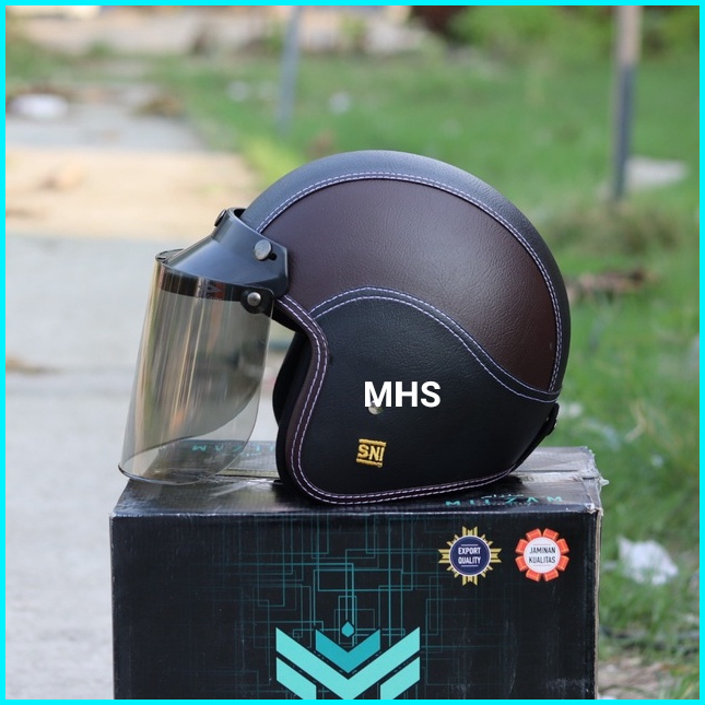 Helm Bogo Kulit Full Leher Untuk Wanita Dan Pria Dewasa Kualitas Premium Sni