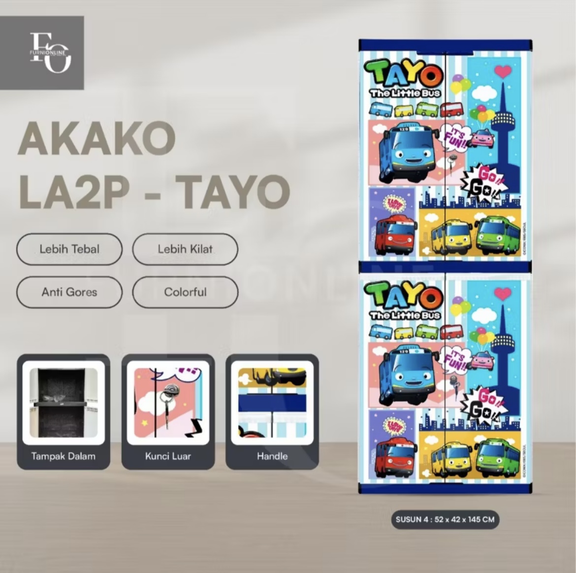 AKAKO - Lemari Pakaian Plastik Anak Baby Akako Jumbo 2 Pintu Susun 4 Motif Printing LA2P + Kunci Lemari Motif Termurah