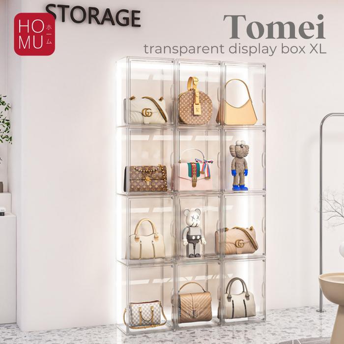 (DEFCT) HOMU TOMEI TRANSPARENT STORAGE DISPLAY BOX XL KOTAK PENYIMPANAN SEPATU DISPLAY TAS BUKU TRANSPARAN MAGNET NON ACRYLIC AKRILIK - BAG STORAGE A