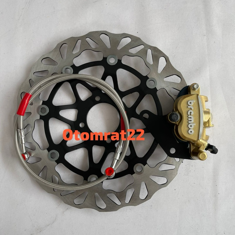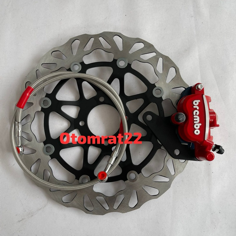 PIRINGAN DISC CAKRAM RX KING NEW 300MM 1PAKET KALIPER SAMURAI 2PISTON PLUS SELANG REM 95CM CARBON