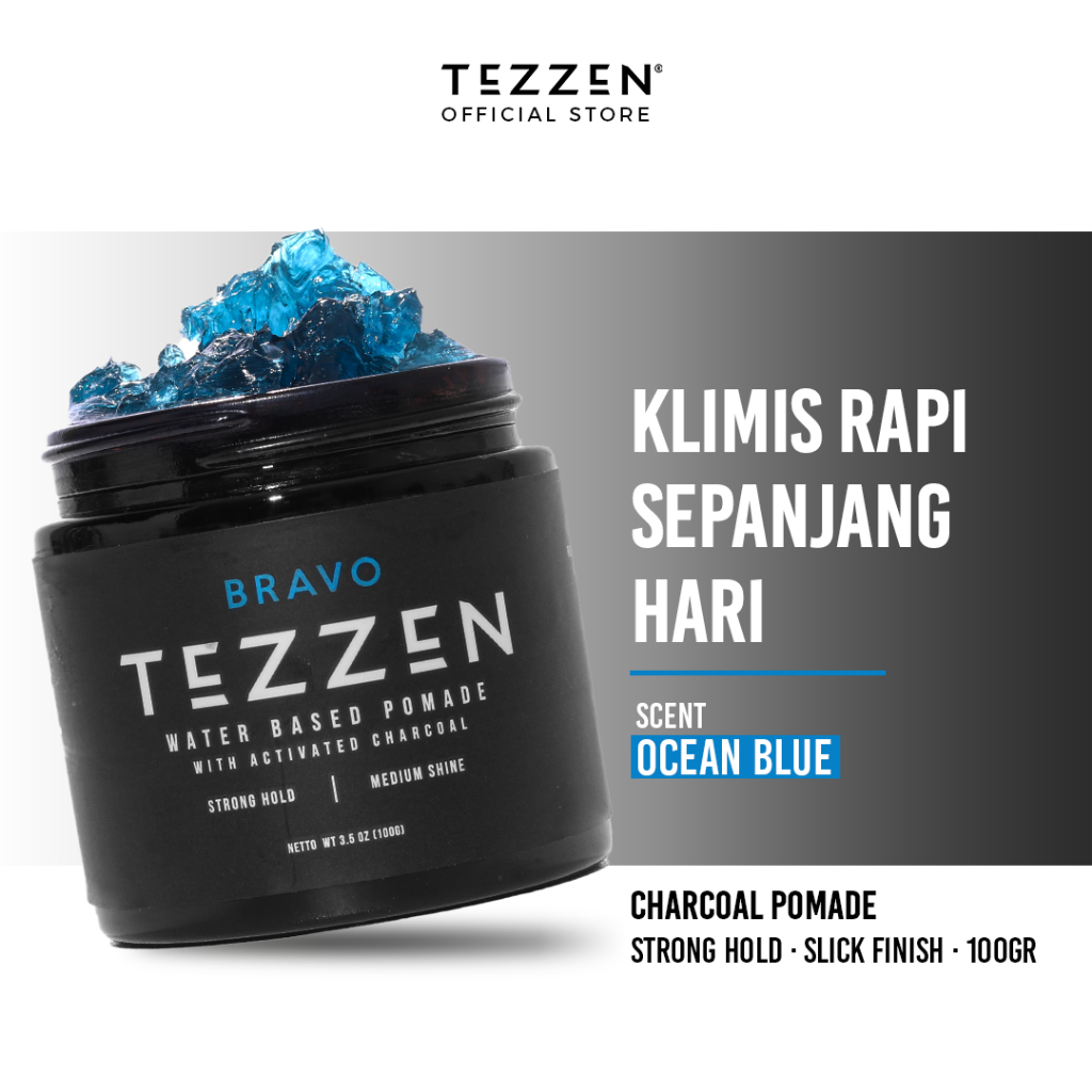 Tezzen Bravo Charcoal Water Based Pomade - Premium Hair Pomade Rambut Keren Rambut Sehat