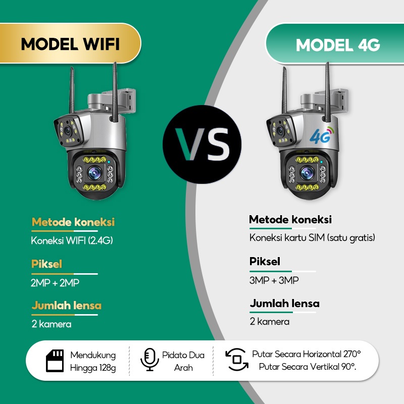 Cctv Kamera V380 V10 Outdoor Hd Wifi Tahan Air Lensa Ganda Motion Tracking
