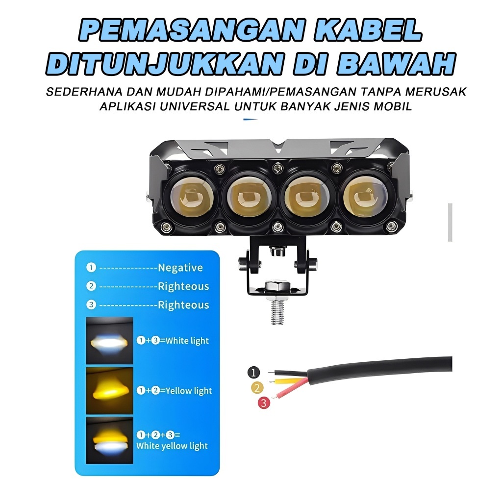 Lampu Tembak Mobil Motor Laser Sql 3 Mata 4 Mata D2 D3 Full Aluminium Premium Kuning-Putih/Putih-Putih 150W 10000Lm Ip68