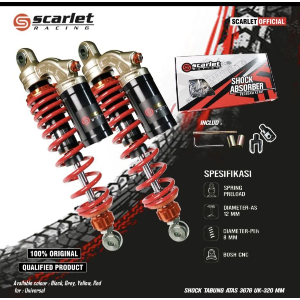 SCARLET 3676 SHOCK TABUNG 340 / 320 / 280 mm U+O. Nmax / N max new. jupiter supra vega revo blade rxk grand sp