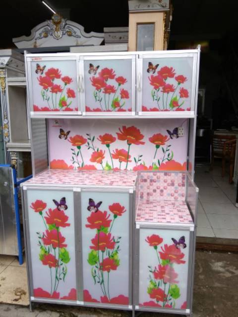 Lemari Piring Rak Piring 3 Pintu Almunium Kaca Full Karakter