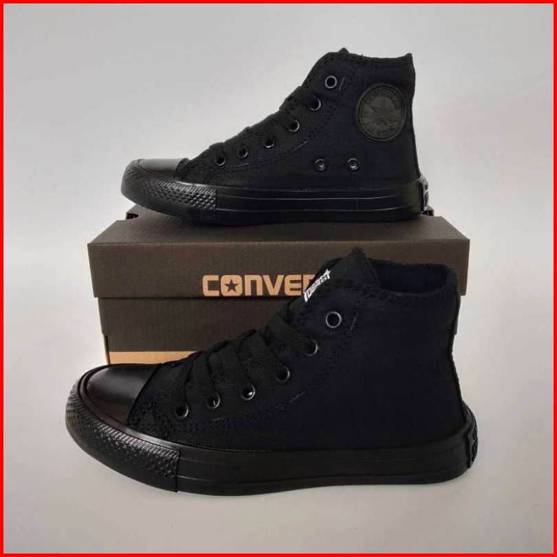 Sepatu Classic Full Black Sneakers Hitam Polos Allstar Anak Laki-laki Perempuan Size 31-43