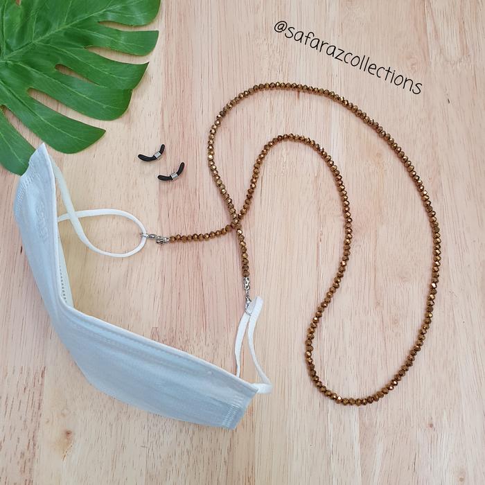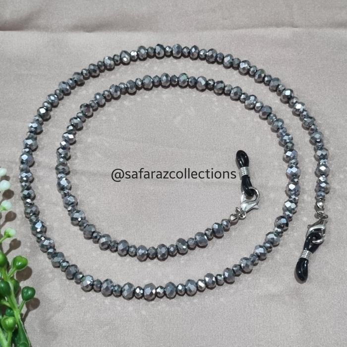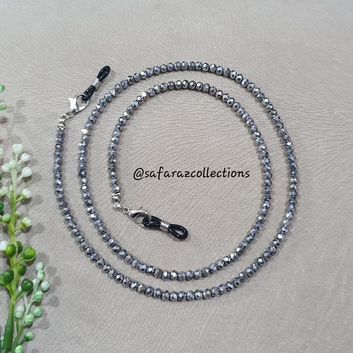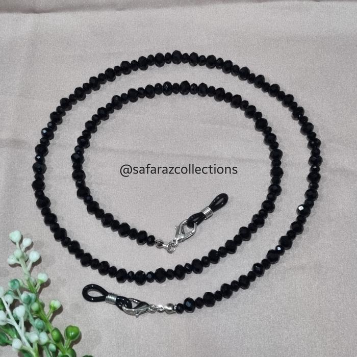 TALI KACAMATA / KALUNG MASKER 2IN1 KRISTAL CEKO 4MM RANTAI STRAP - HITAM