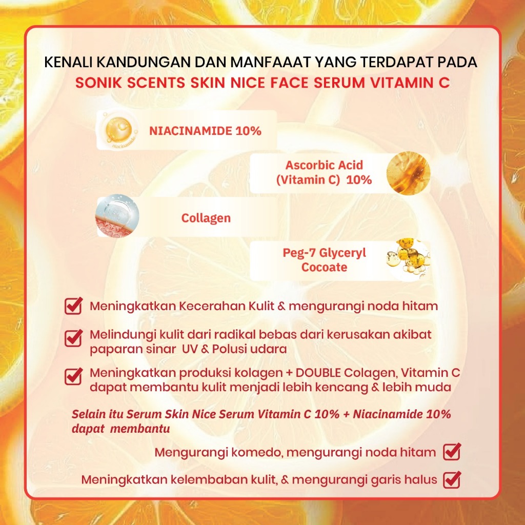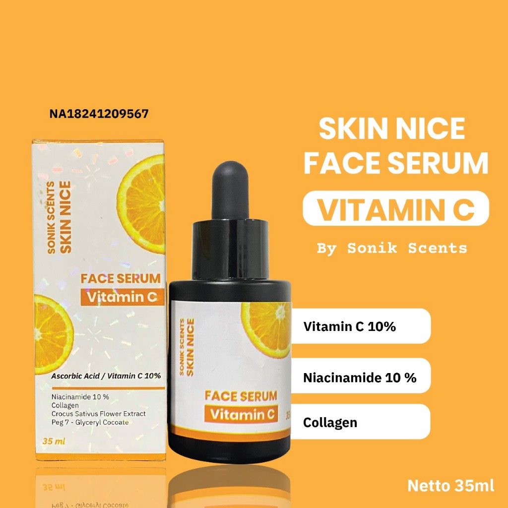 SONIK SCENTS Skin nice face serum vitamin c 10% , niacinamide 10% - 35ml/20ml, Collagen , Perawatan Wajah Kusam, Mencera
