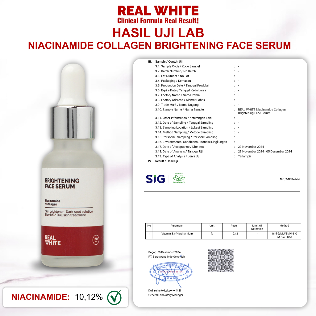 [10% NIACINAMIDE] REAL WHITE 10% Niacinamide + Collagen Brightening Face Serum | BPOM HALAL Skincare Whitening Pemutih P