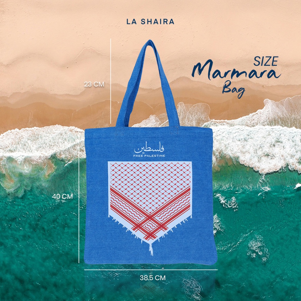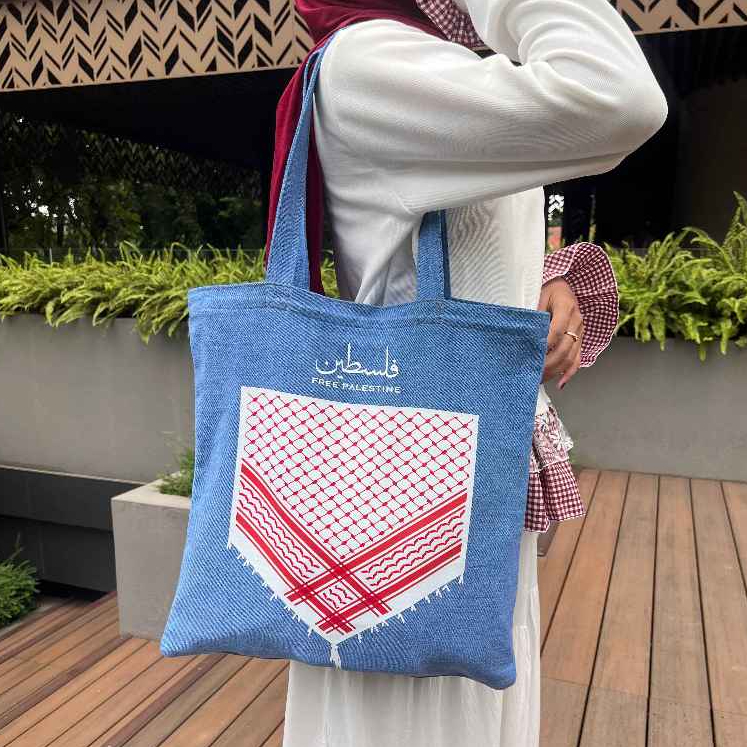 La Shaira Marmara Tote Bag Palestine - Tote Bag Cewek - Tas Denim Muat Laptop