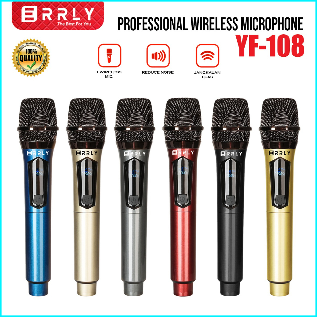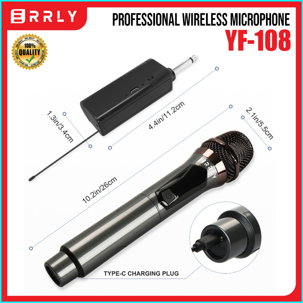 Errly Yf-108 Microphone Wireless Uhf Single 1mic Digital Led Profesional Chargeable Mikrofon Nirkabel Isi Ulang Karaoke