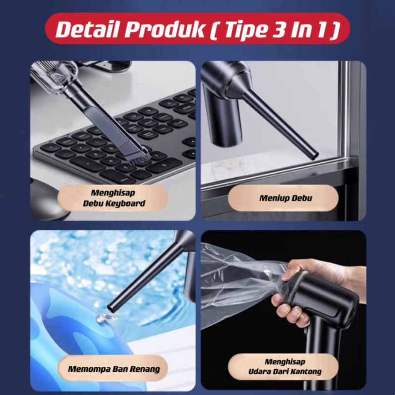 Vacuum Cleaner Mobil 3in1 Recharge Vacum Wireless Portable 2in1